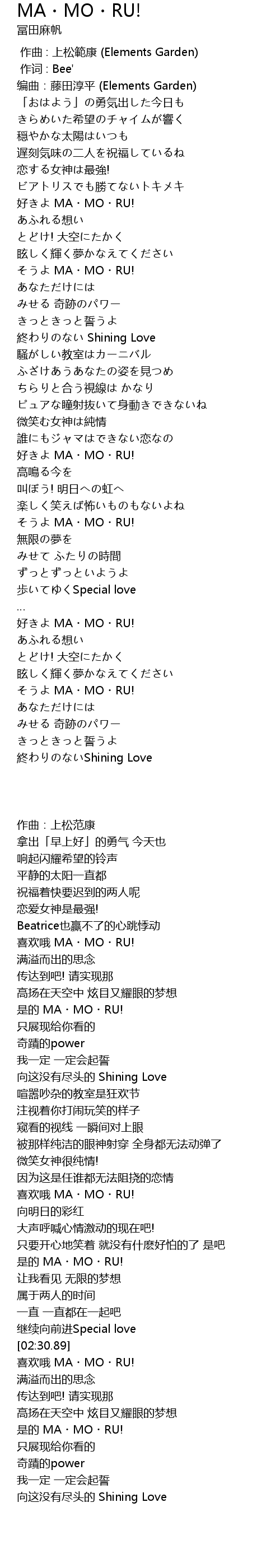 | [00:54.74] | 好きよ MA・MO・RU! |