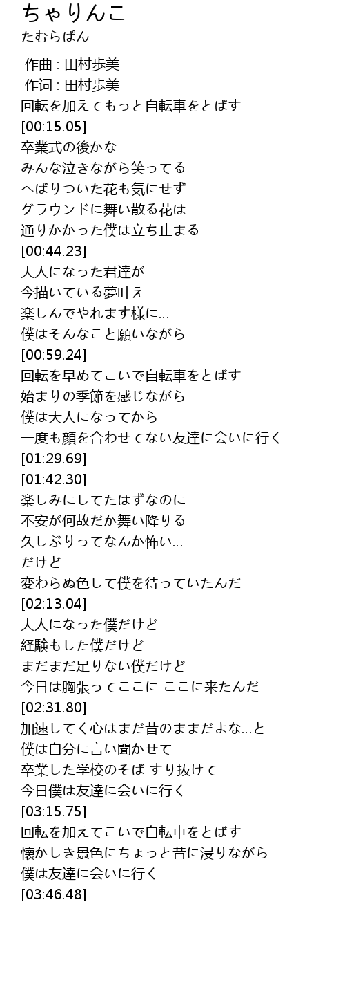 | [03:16.72] | 回転を加えてこいで自転車をとばす |