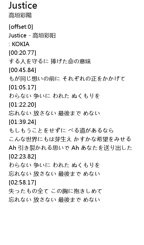 | [00:01.24] | Justice - 高垣彩阳 |