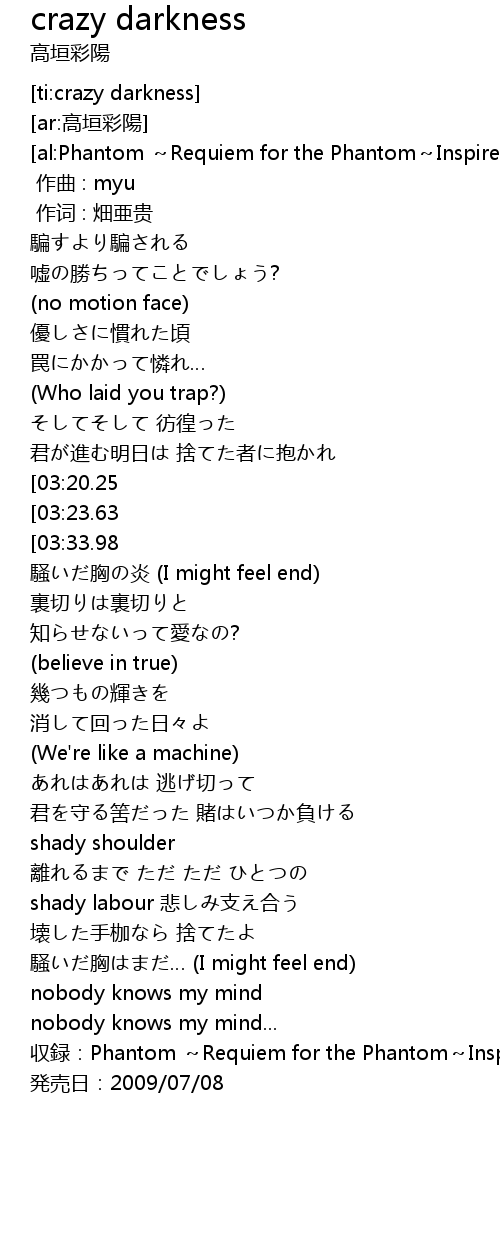 | [01:13.42][03:33.98][04:01.37] | crazy darkness |