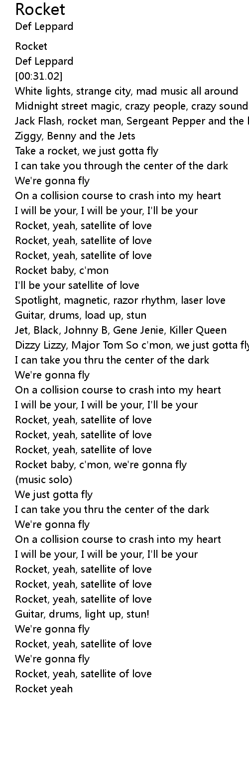 Rocket, yeah, satellite of love |
