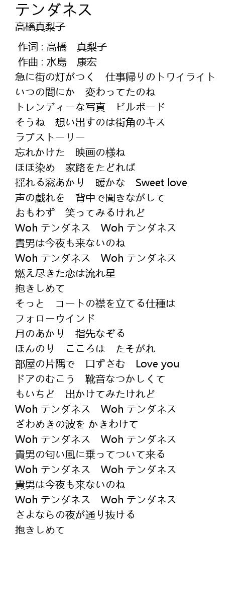 | [01:58.101] | Woh テンダネス Woh テンダネス |
