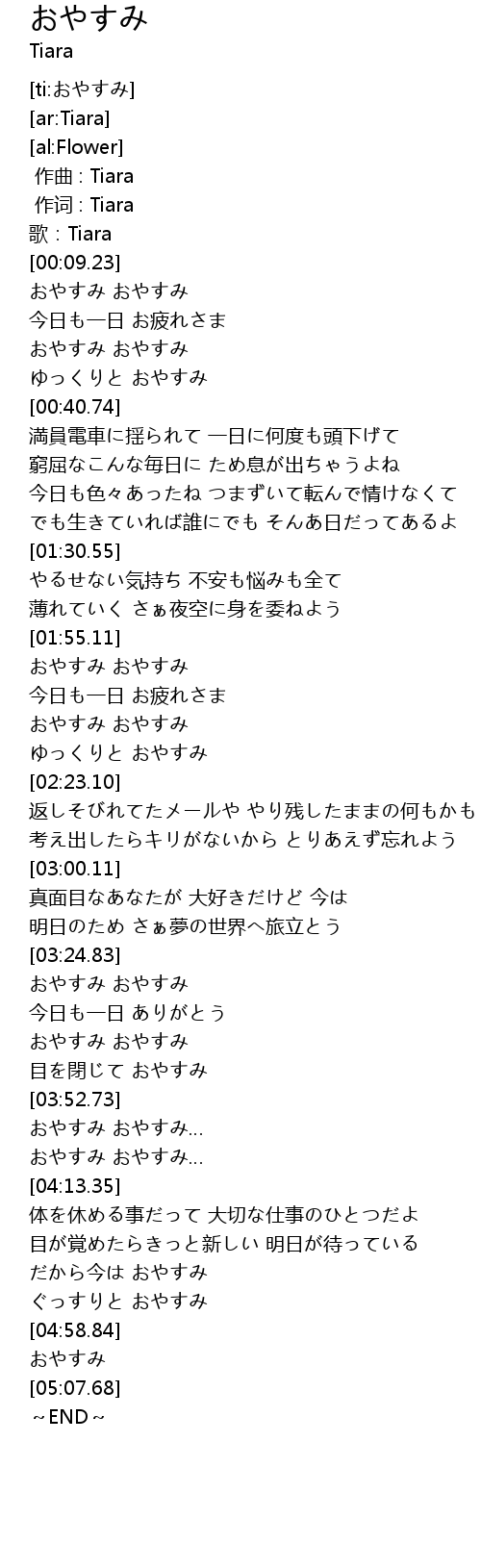 | [04:06.84] | おやすみ おやすみ… |