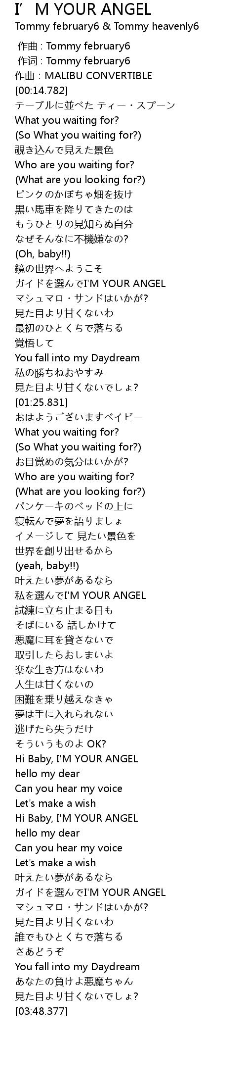 | [00:56.454] | ガイドを選んでI'M YOUR ANGEL |