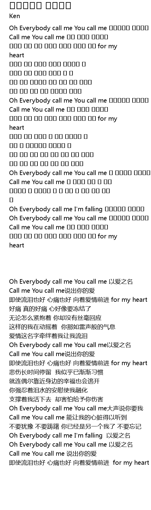 | [02:38.299] | Oh Everybody call me I'm falling 사랑이라는 이름으로 |