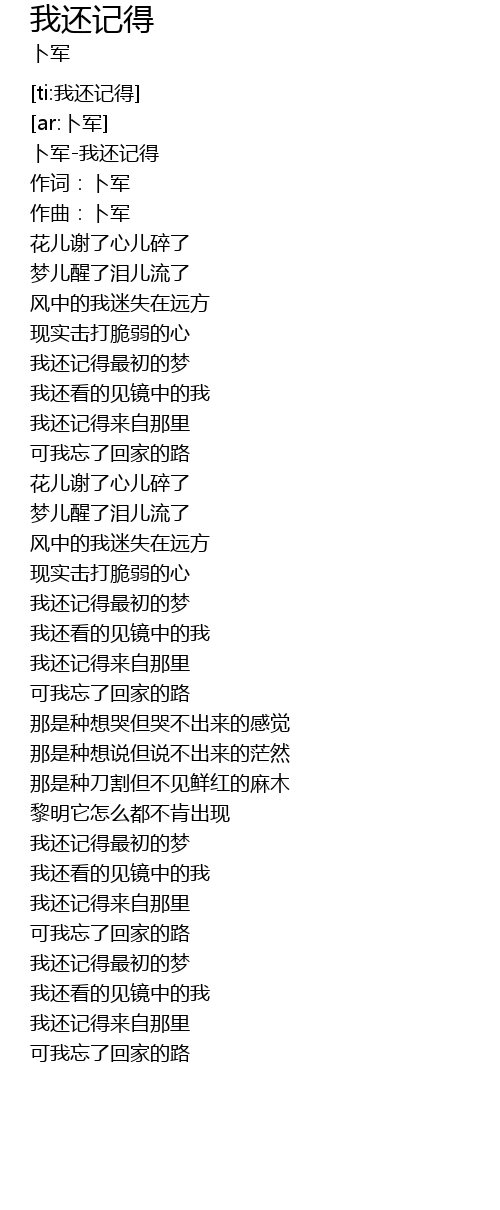 | [03:55.36] | wǒ hái jì de zuì chū de mèng |