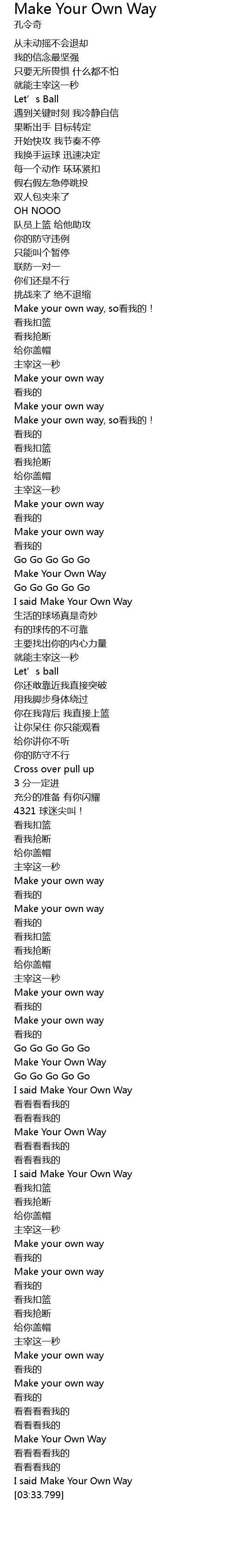 | [01:35.610] | Make your own way, so看我的! |