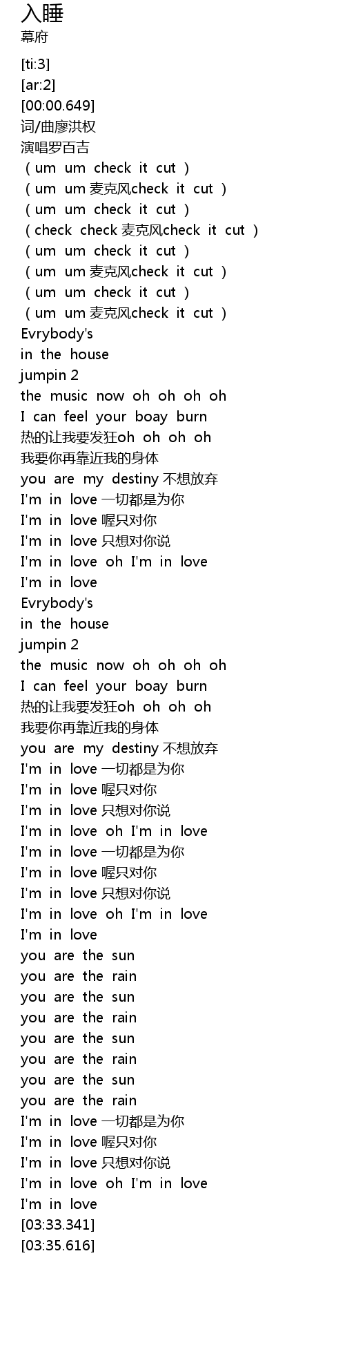 | [03:11.842] | I' m in love yi qie dou shi wei ni |