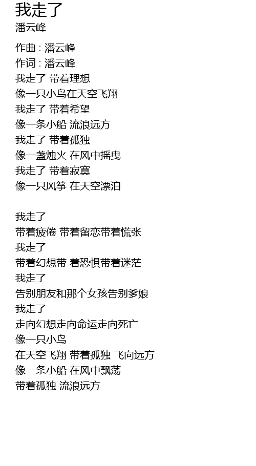 | wǒ zǒu le dài zhe lǐ xiǎng | |