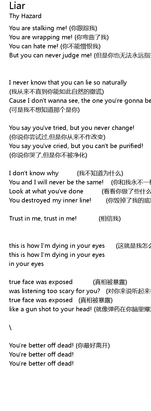 | I never know that you can lie so naturally (我从来不直到你能如此自然的撒谎) | |