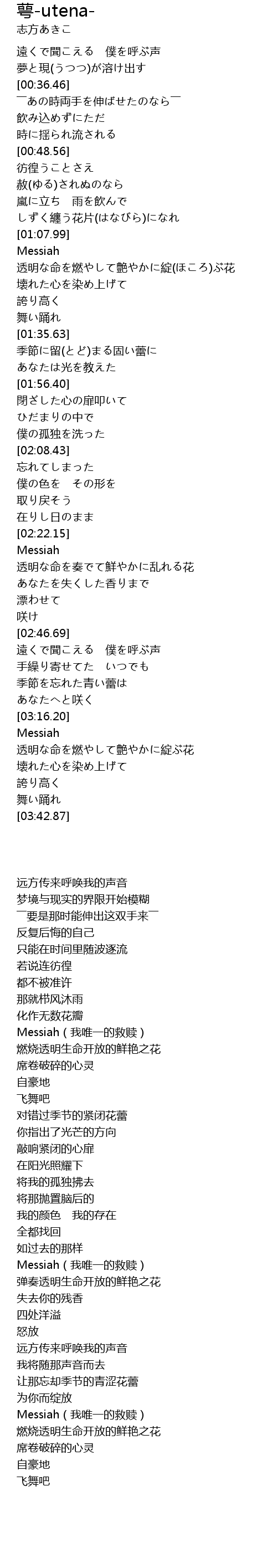 | [03:18.12] | 透明な命を燃やして艶やかに綻ぶ花 |