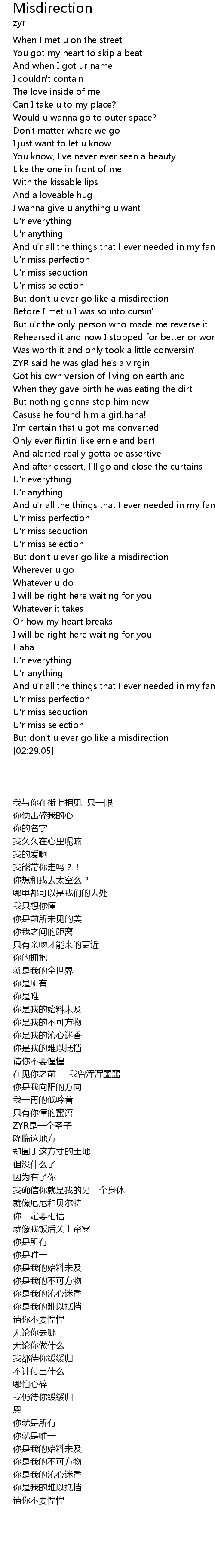 | [01:05.33] | ZYR said he was glad he's a virgin |