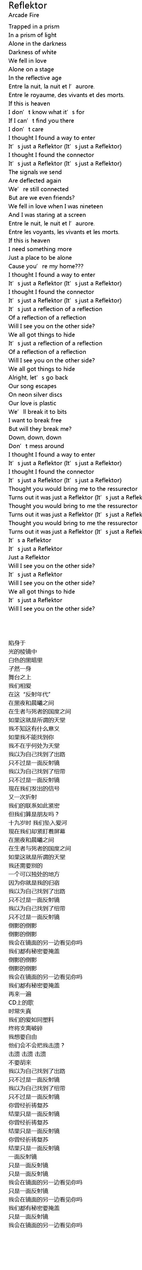 | [04:51.91] | Turns out it was just a Reflektor It' s just a Reflektor |