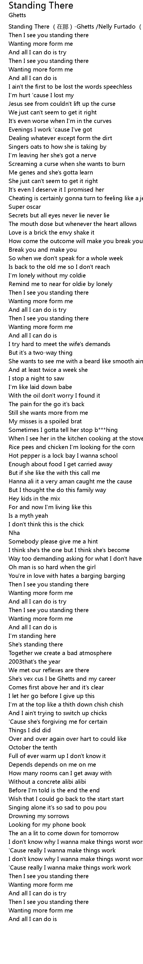 | [00:00.00] | Standing There zai na Ghetts Nelly Furtado li fei ta duo |