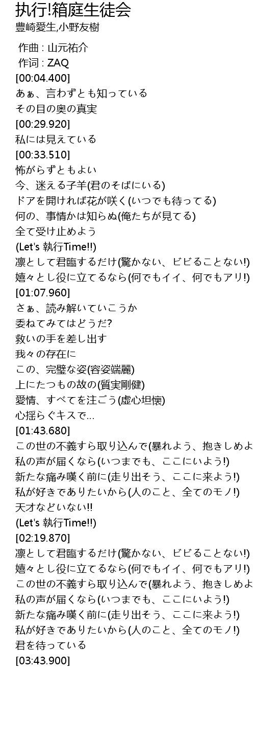 | [02:18.690] | Let' s zhí xíng Time!! |
