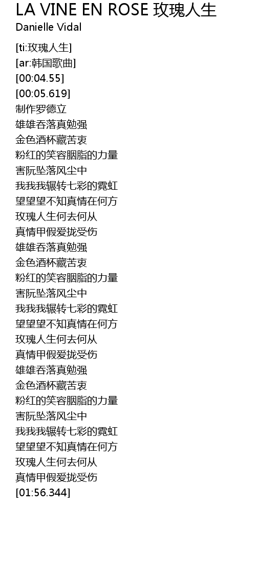 | Song | LA VINE EN ROSE 玫瑰人生 |