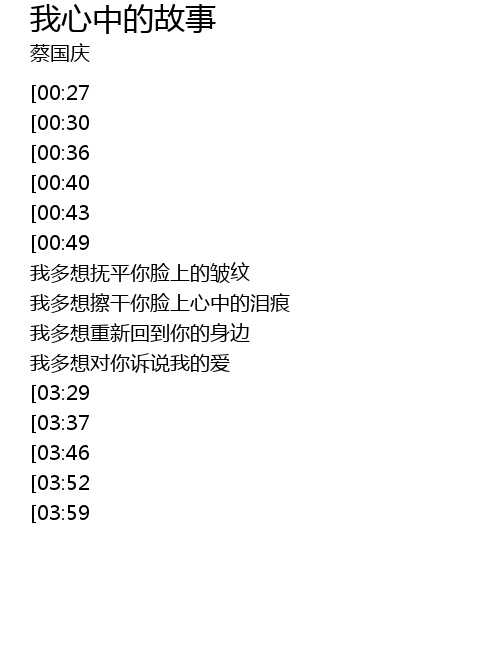 | [04:29][03:46][01:41] | 我多想抚平你脸上的皱纹 |