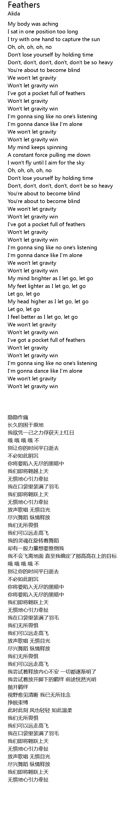 | [02:45.17] | My feet lighter as I let go, let go |