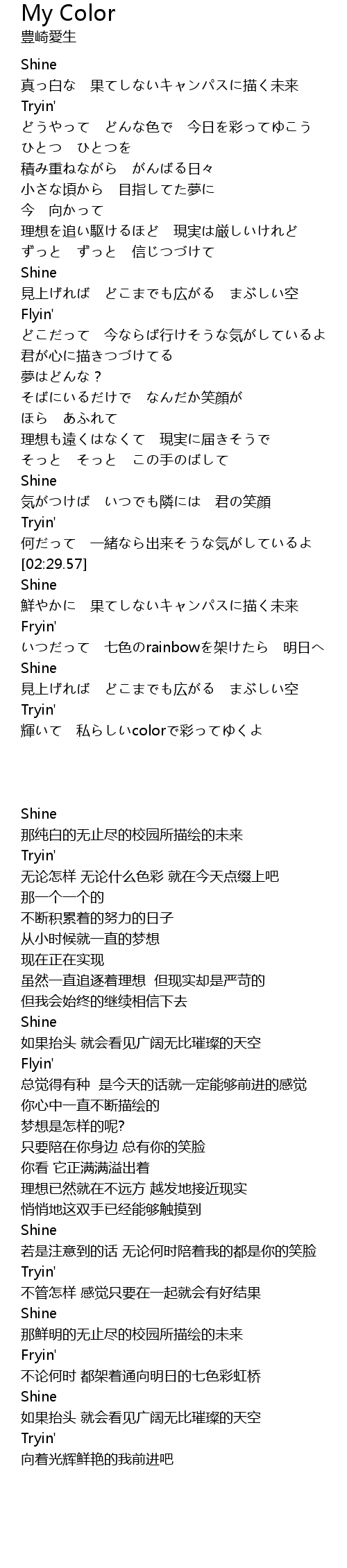 | [02:56.90] | qī sè rainbow jià míng rì |