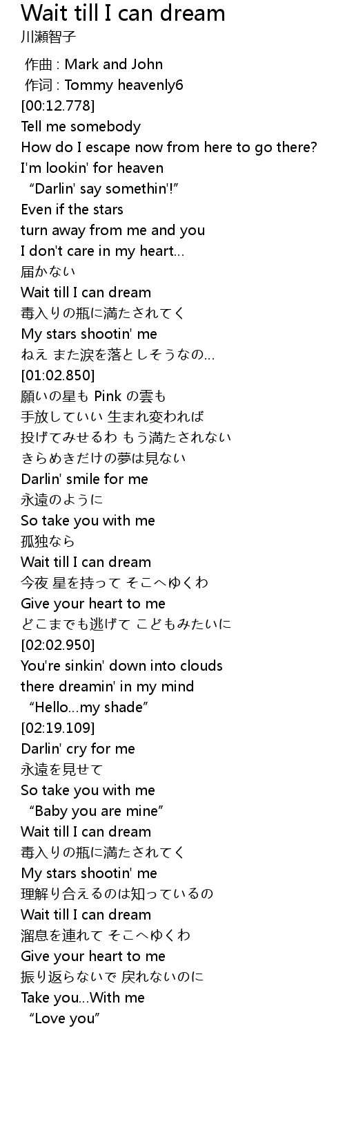 | [03:00.586] | Wait till I can dream |