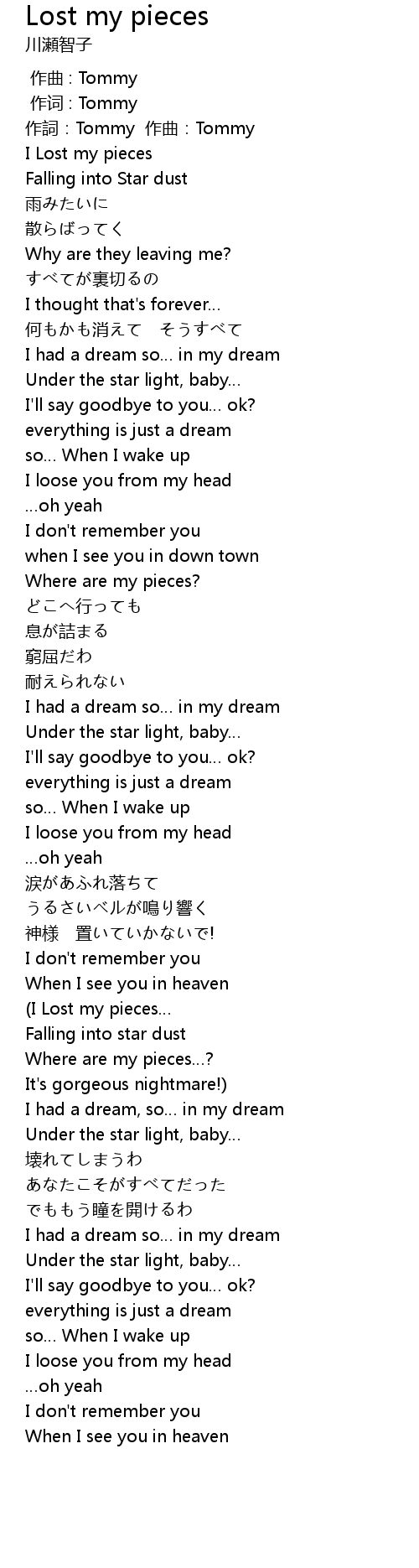 | [00:18.822] | I Lost my pieces |