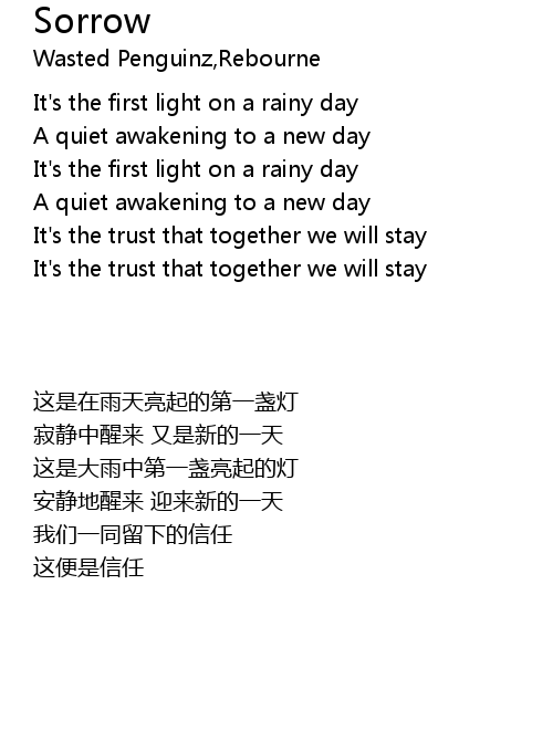| [00:15.75] | It's the first light on a rainy day |