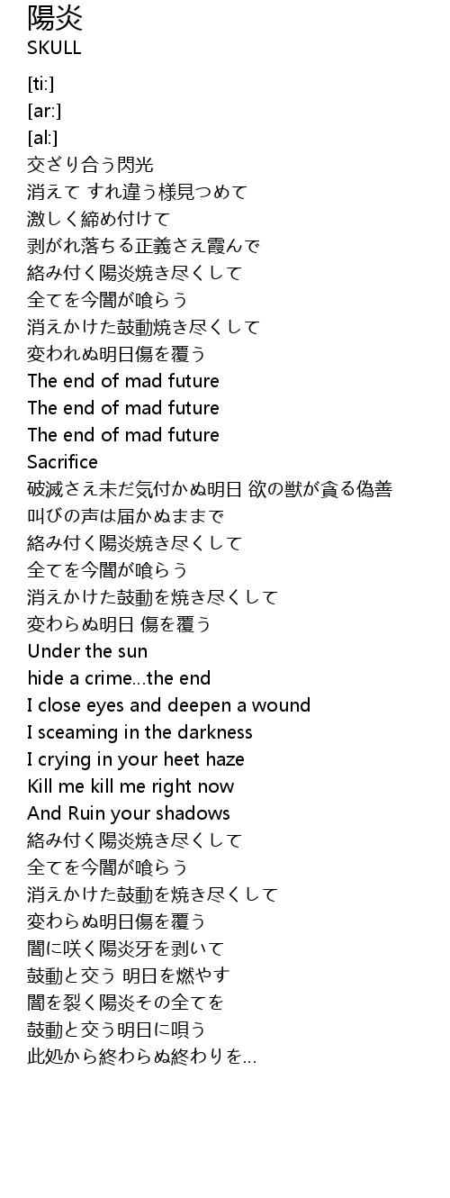 | [02:46.73] | 闇を裂く陽炎その全てを |