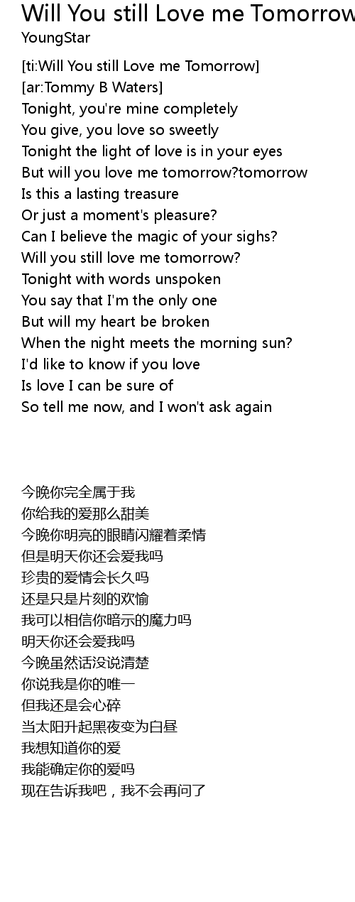| [00:49.37] | But will you love me tomorrow?tomorrow |