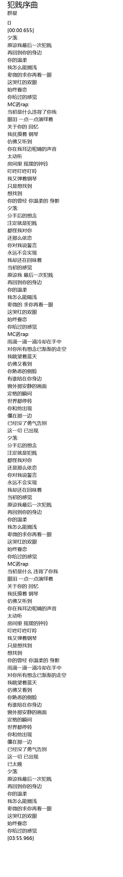| [01:26.640] | 原谅我 最后一次犯贱 |