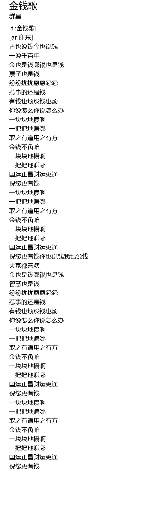 | [01:26.186] | 祝您更有钱你也说钱我也说钱 |
