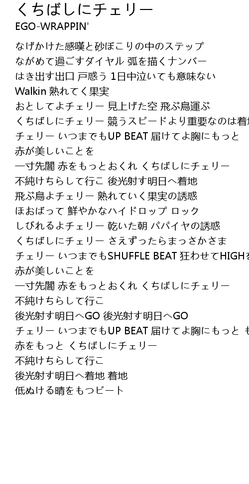 | チェリー いつまでもUP BEAT 届けてよ胸にもっと もっと | |