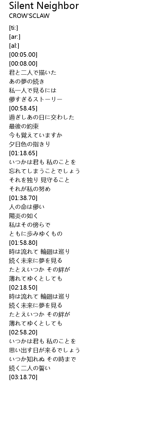| [01:58.81] | 時は流れて 輪廻は巡り |