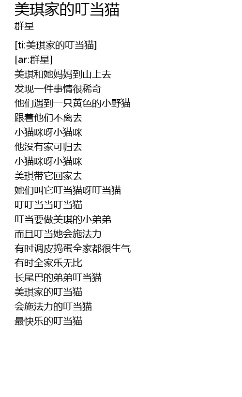 | [00:39.561] | 叮当要做美琪的小弟弟 |