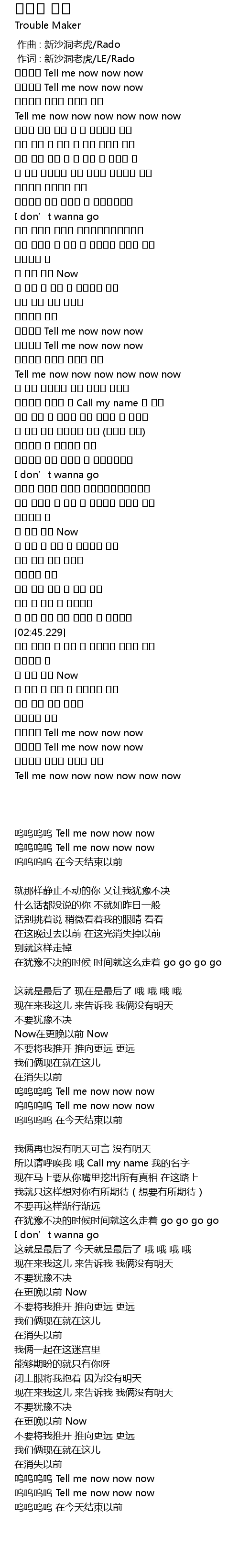 | [00:01.00] | 作词 : 新沙洞老虎/LE/Rado |