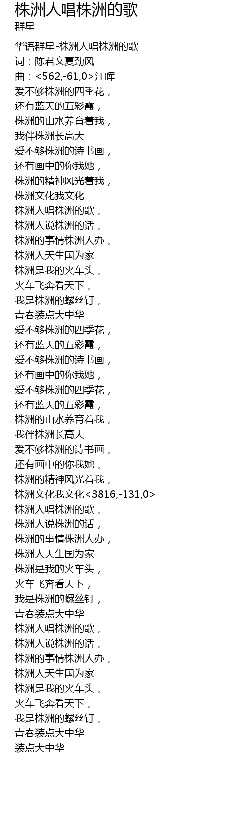 | [03:33.160] | 株洲人唱株洲的歌, |