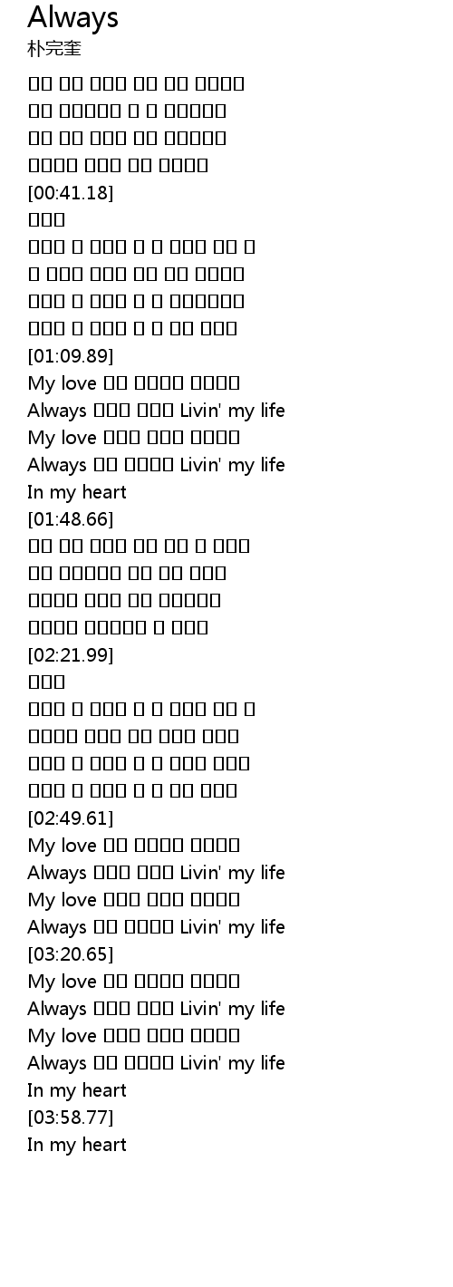 | [03:42.02] | Always 그댄 운명처럼 Livin' my life |