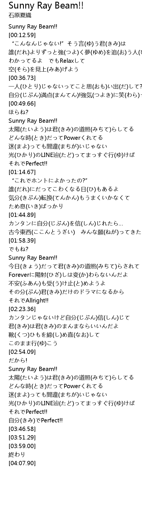 | [02:00.25] | Sunny Ray Beam!! |