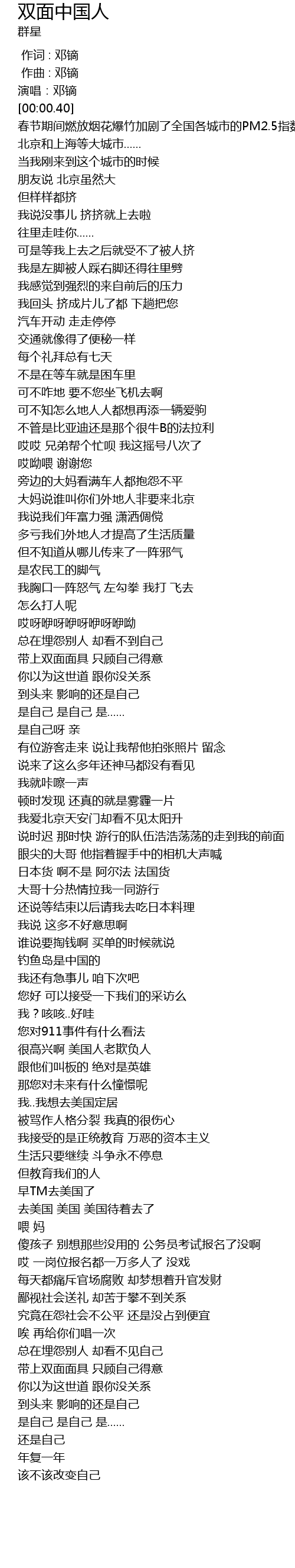 | [00:55.53] | 大妈说谁叫你们外地人非要来北京 |