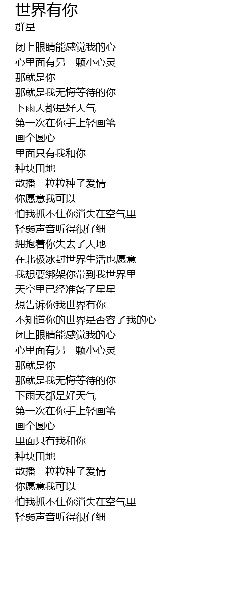 | 不知道你的世界是否容了我的心 | |