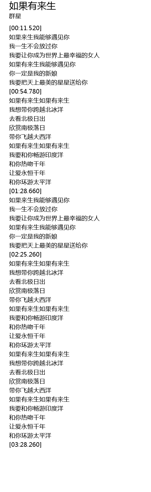 | [02:11.190] | 如果有来生我能够遇见你 |