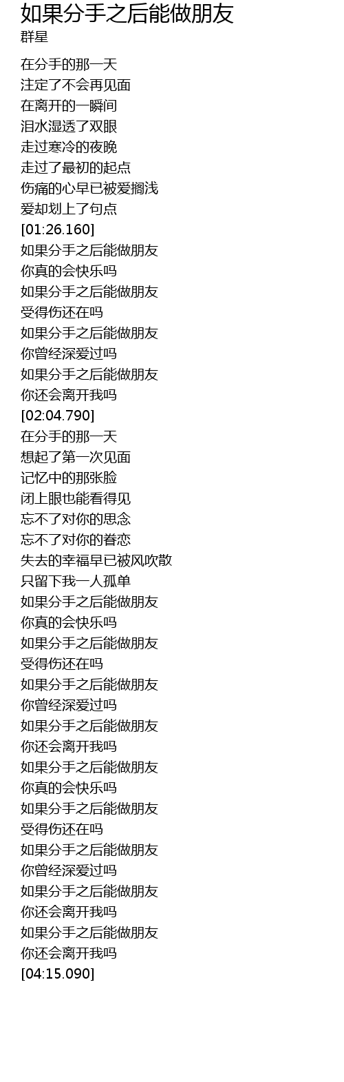 | [01:46.910] | rú guǒ fēn shǒu zhī hòu néng zuò péng yǒu |