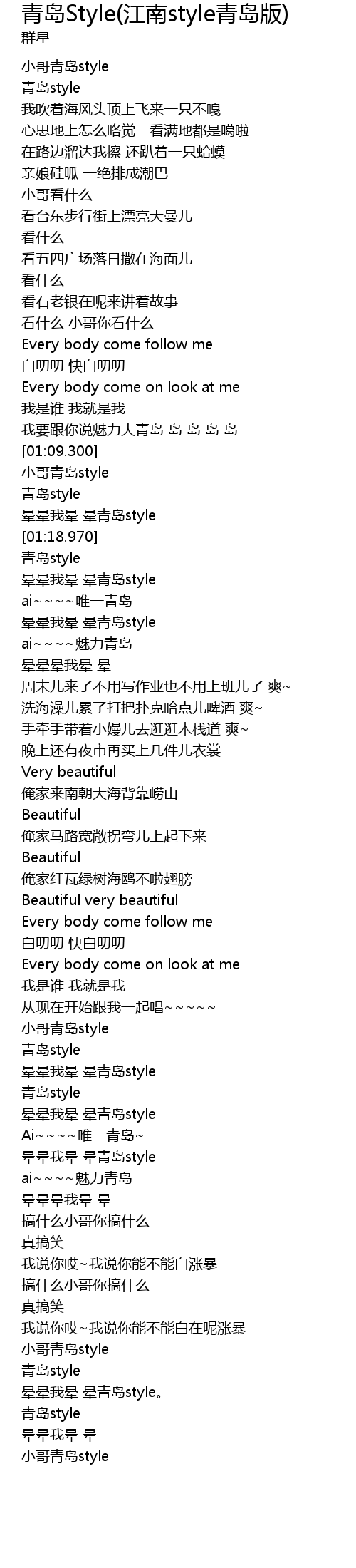 | [03:24.790] | 晕晕我晕 晕青岛style。 |
