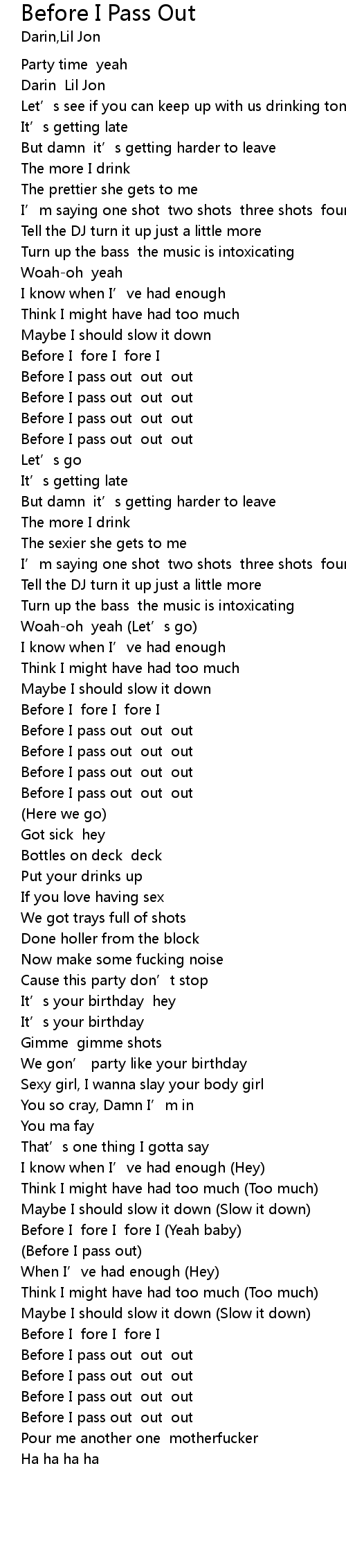 | [02:05.90] | Before I pass out out out |