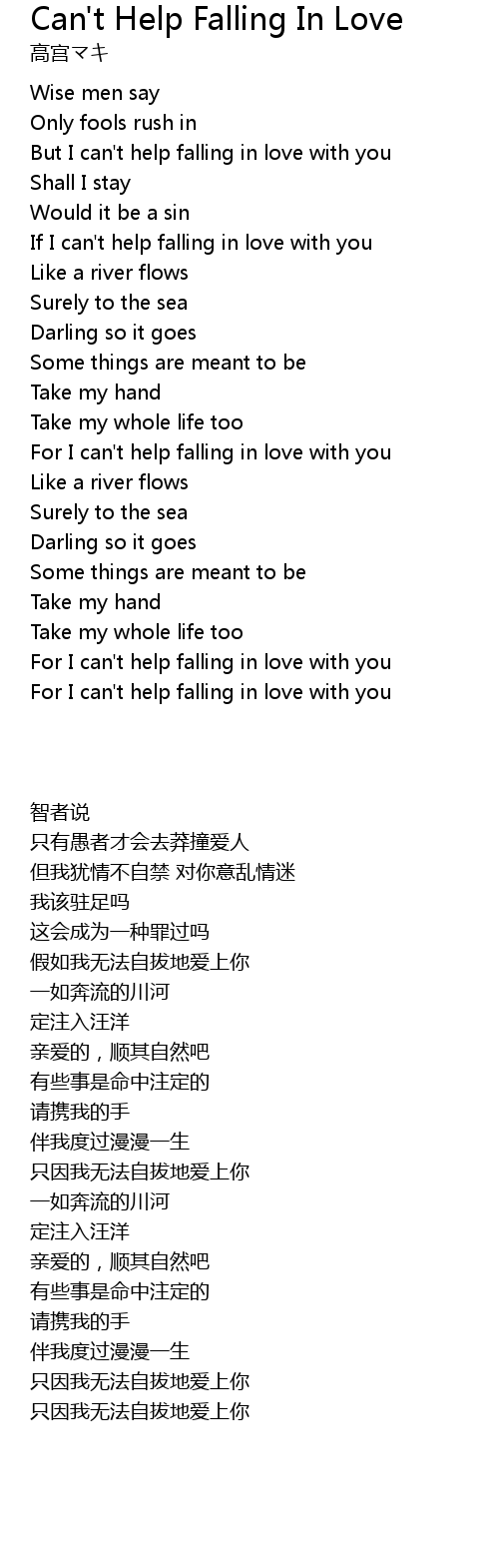 | [01:44.67] | For I can't help falling in love with you |