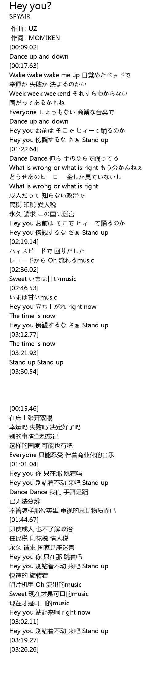 | [02:55.54] | Hey you 立ち上がれ right now |