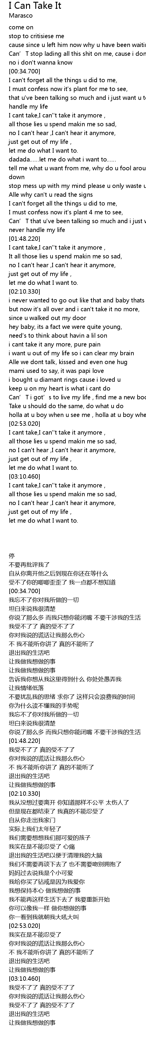 | [02:53.940] | I cant take,I can′′t take it anymore , |