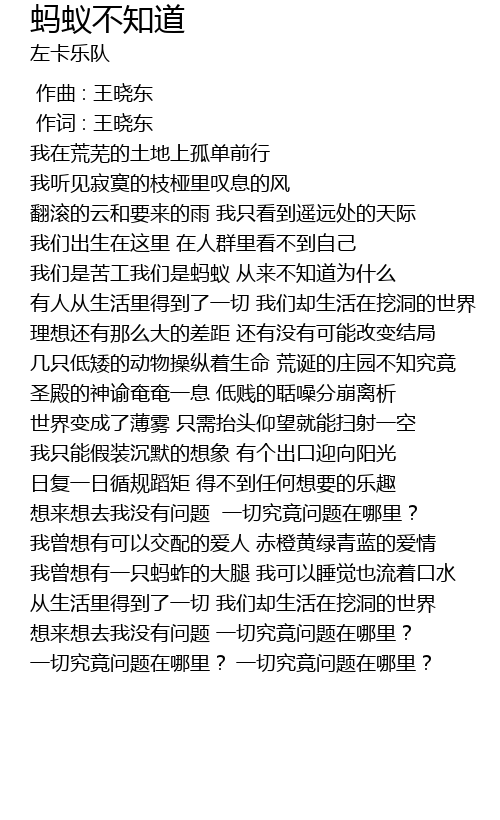 | [00:50.236] | 我们是苦工我们是蚂蚁 从来不知道为什么 |