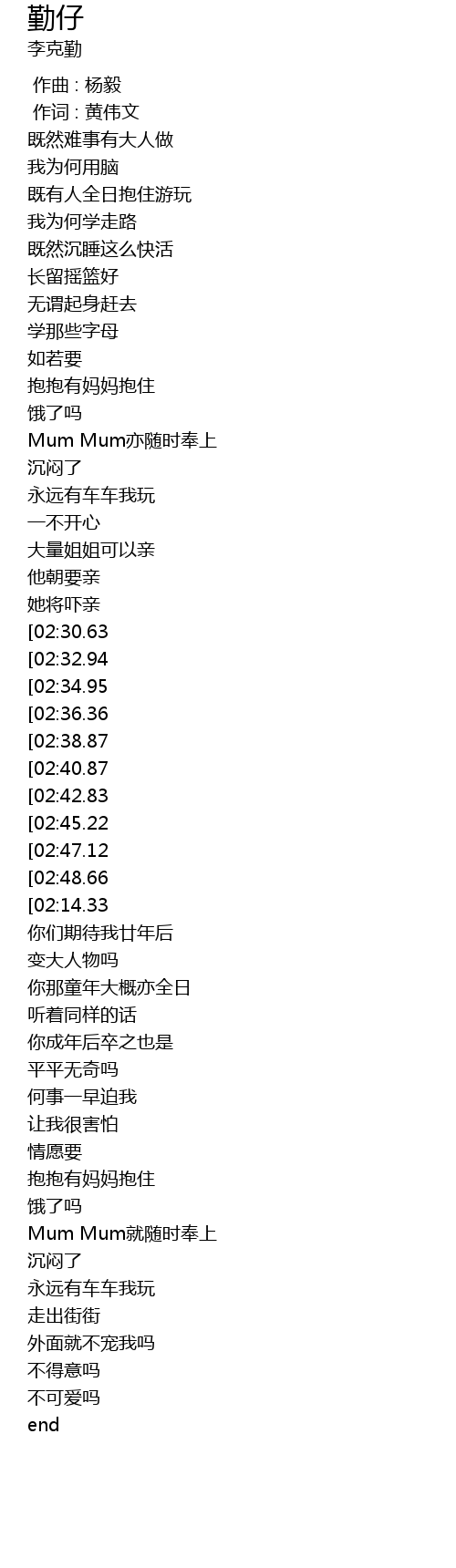 | [01:39.01] | 沉闷了 |