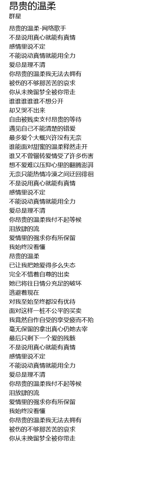 | [00:00.00] | 昂贵的温柔-网络歌手 |