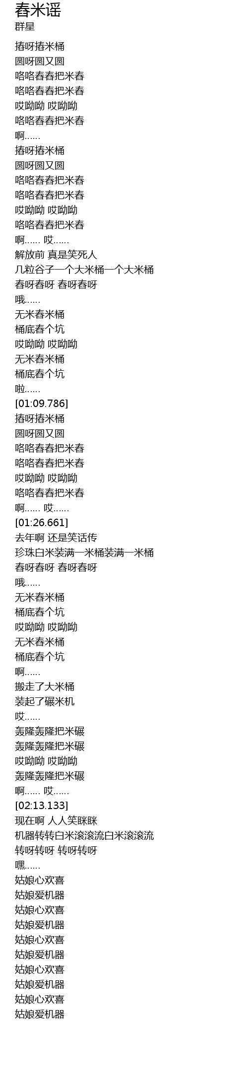 | [01:37.502] | 舂呀舂呀 舂呀舂呀 |
